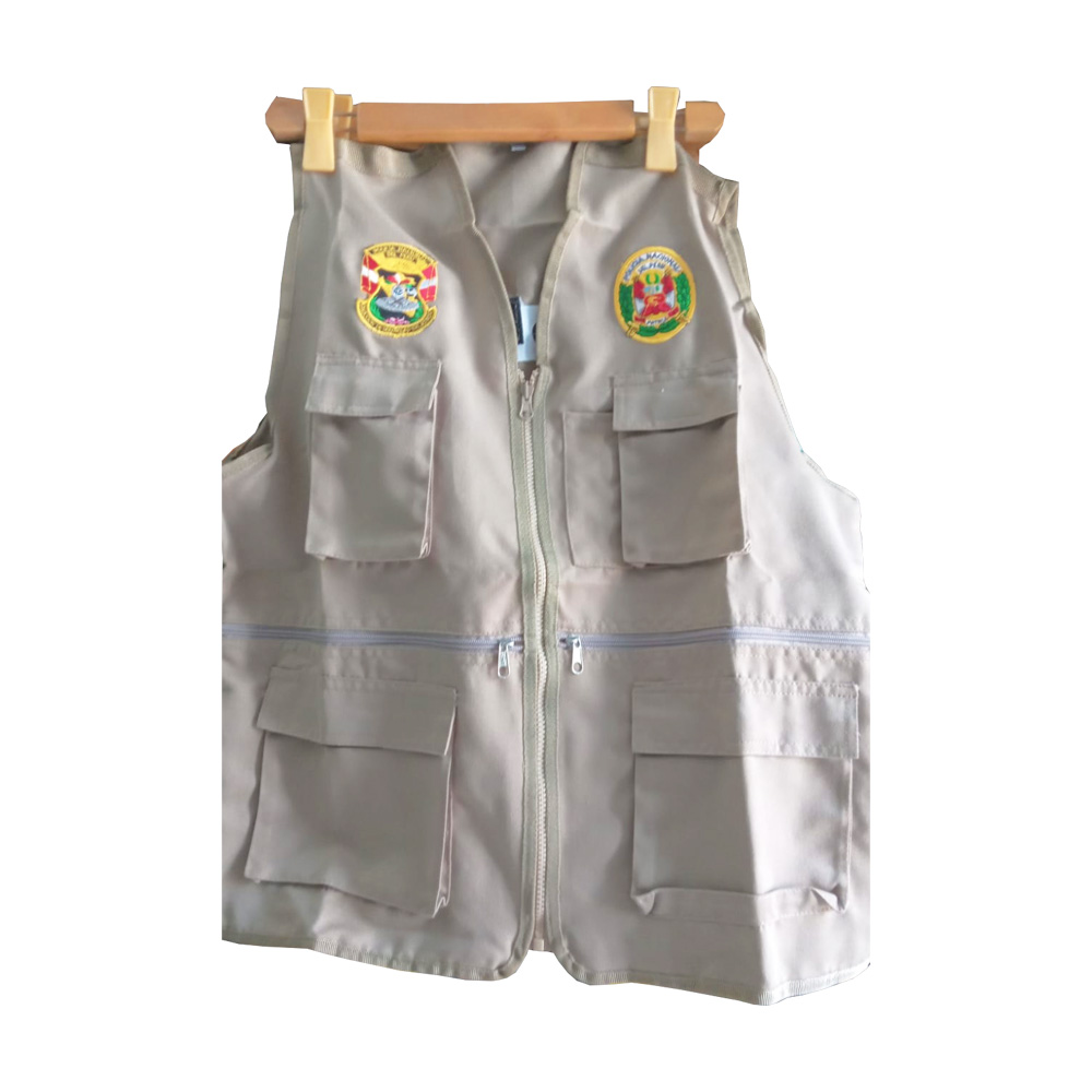 Chaleco porta placa de lona acolchado, regulador con pega pega en el pecho, cinta reflectiva y logo bordado